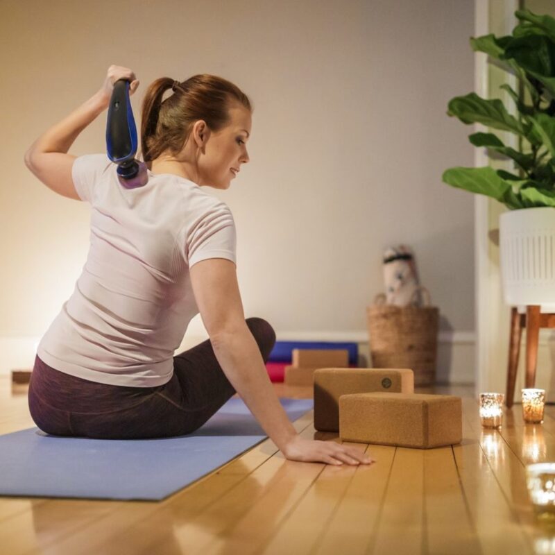 Although, pain won’t be eliminated through the use of a percussion massager tool. It will, however, increase blood flow to a specific muscle group and can help reduce tension, inflammation, and tight knots experienced after a hard workout.