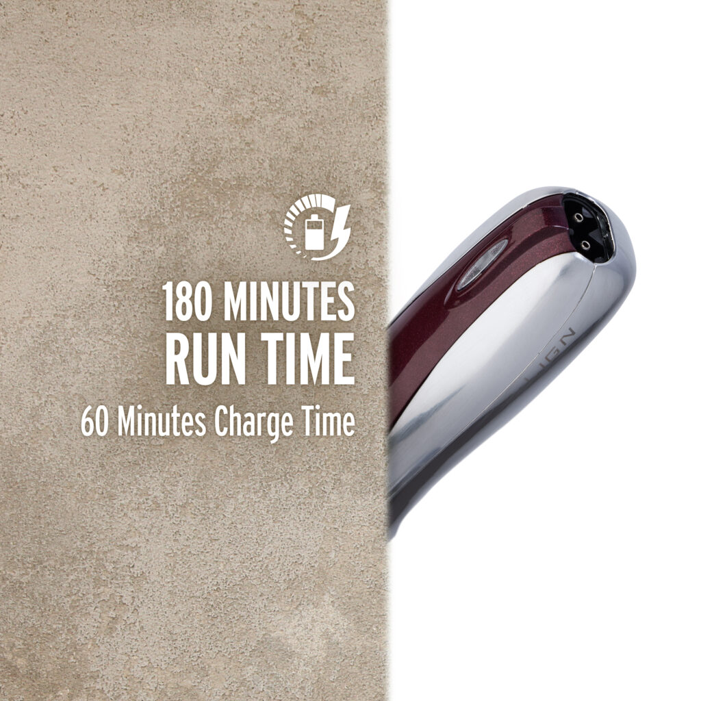 A rotary motor delivers the power for quick, quiet work. And a single full charge delivers three hours of cordless freedom.