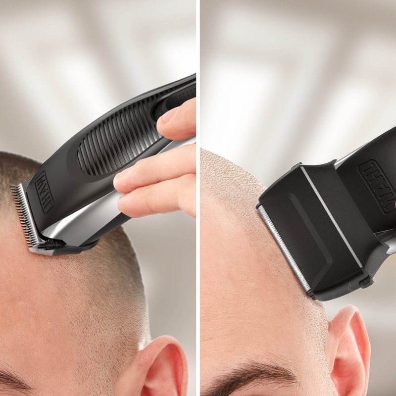 The Wahl Bald and Buzz Cut (Model 9649) is the ideal grooming tool for shaving heads and performing buzz cuts. It can be used with or without the cord, offering freedom of movement with a 120-minute cordless run time.