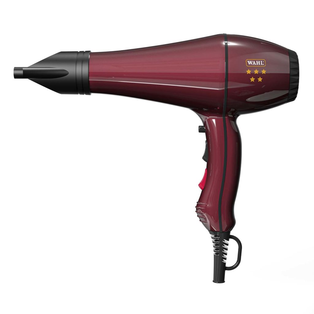 The Wahl Powerdry is a powerful 2000W hairdryer in burgundy with a professional AC motor.