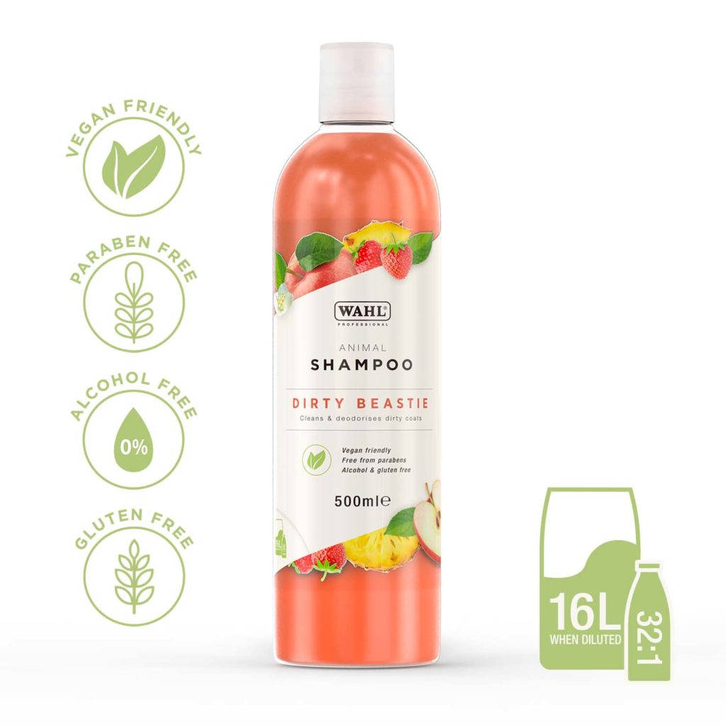 Wahl Dirty Beastie Shampoo is designed for use on dirty, thick or matted coats. Leaves the animal’s coat clean, conditioned and manageable.