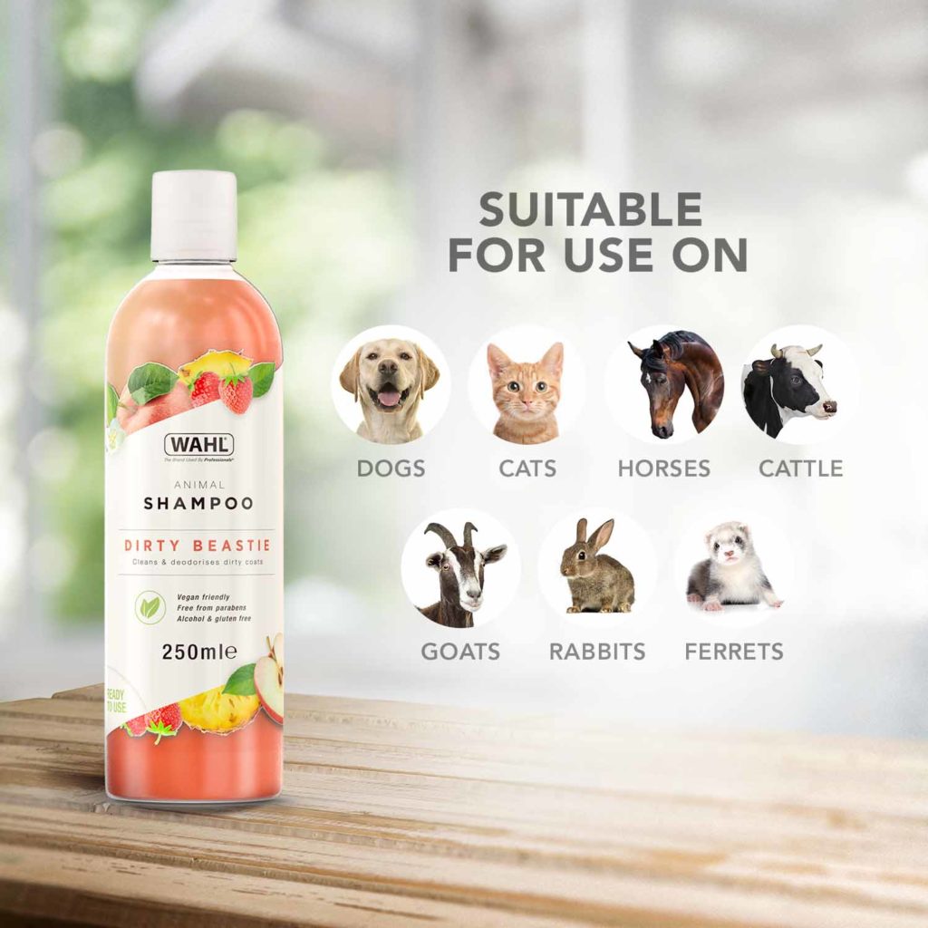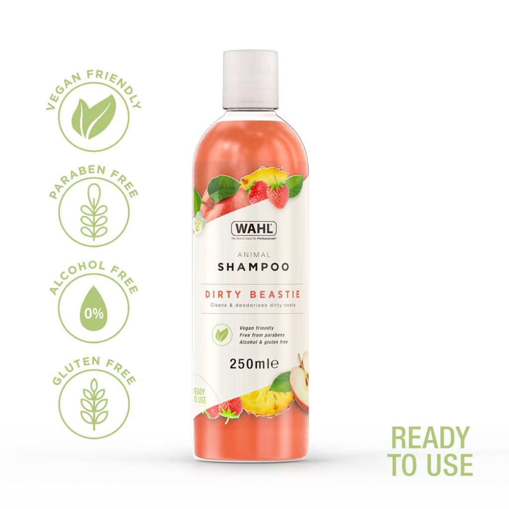 Wahl Dirty Beastie Shampoo is a perfectly balanced formula that will effectively cleanse dirty, thick or matted coats and deodorise even the smelliest coat.