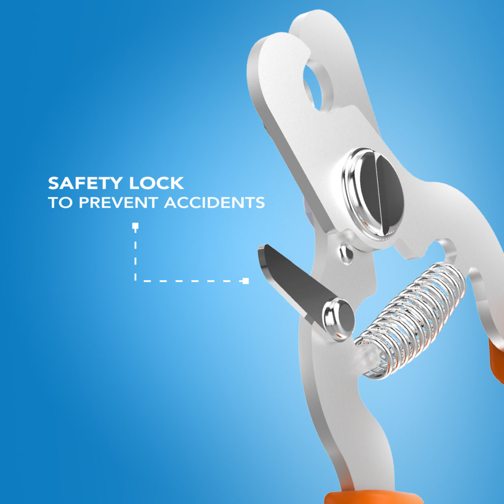 The rubber coated handles help to clip the nails comfortably and prevents your hands from slipping. The comfort handle design also prevents hand and wrist strain. The spring mechanism reduces hand fatigue & will also save you from extra hassle while cutting. Made with ergonomic design, these claw clippers reduce injury for you and your pet.