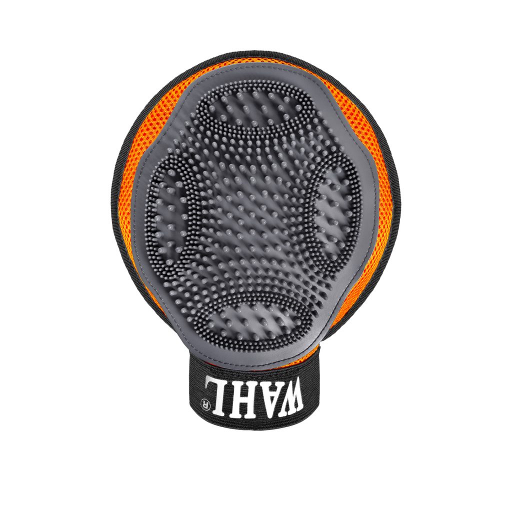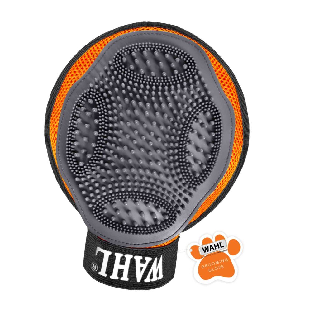 The Wahl Grooming Glove is a mitten-style curry comb with gentle rubber bristles of varying sizes to help remove shed hair. Mesh reverse side for easy cleaning.