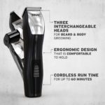 The Groomsman 8 in 1 Multigroomer is a rechargeable trimmer, with three interchangeable heads for beard and body grooming.