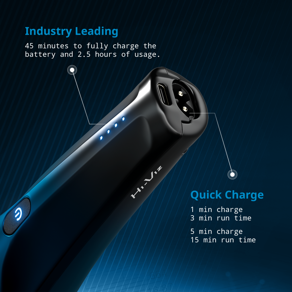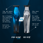 The Hi-Viz®Air is the next stage of evolution in barber trimmer technology. Designed to work harder, last longer and give peak clipping efficiency all while giving you superior control over clients hair. With it's slim, lightweight design and long lasting 2.5 hour battery life; this is the only Trimmer you'll need for both debulking and precise detailing.