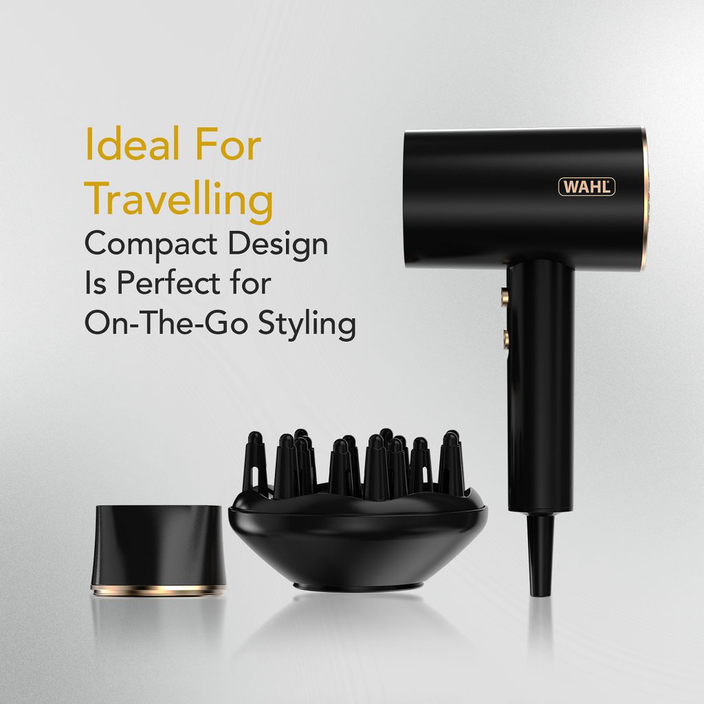 Compact, lightweight design (weighing only 280g), the Wahl Ionic Flow Hairdryer is perfect for effortless styling on the go.