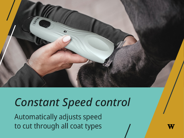 The Wahl KMC+ Equine Clipper is built for professionals, offering unparalleled control and comfort with its patented ergonomic housing. Powered by a brushless motor, it delivers two high-speed settings (3700 and 4500 RPMs) for precise clipping on all coat types. The constant speed control ensures seamless performance, while its all-day cordless power with a 120-minute runtime and 60-minute quick charge makes it ideal for prolonged use. Complete with a #10 Wide Ultimate Competition Series Blade, it guarantees a durable, professional finish.