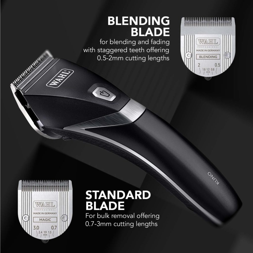 A clipper having a higher RPM means the blades move faster, which allows for smoother and more efficient cutting. This is particularly beneficial for cutting thick or coarse hair, as the higher speed helps the blades cut through hair more cleanly and quickly. The Kuno has 7200RPM, meaning it gives a very smooth cut.
