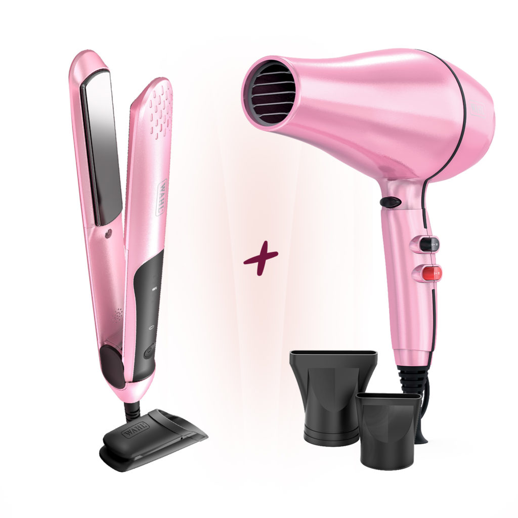 Treat your yourself to this hair styling duo! The Wahl Special Edition Colour Pro Keratin Dryer and Straightener in Pink Shimmer.