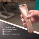 Motiva2™ comes with an adjustable 5-in-1 fine blade that allows you to switch between different length cutting, on the fly. It also contains 2 stainless steel guide combs that allow you adjust cutting length even more to suit the pet type and grooming requirements further.