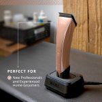 The Motiva2™ has been built specifically to be used by professional dog groomers. With three hours of cordless runtime and the ability to run indefinitely when charging via the cord, this clipper will see you through the busiest days without faltering. The digital display on the front of the clipper tells you if the clipper needs maintenance with a helpful reminder icon. It also has a 4-stage LED battery indicator.