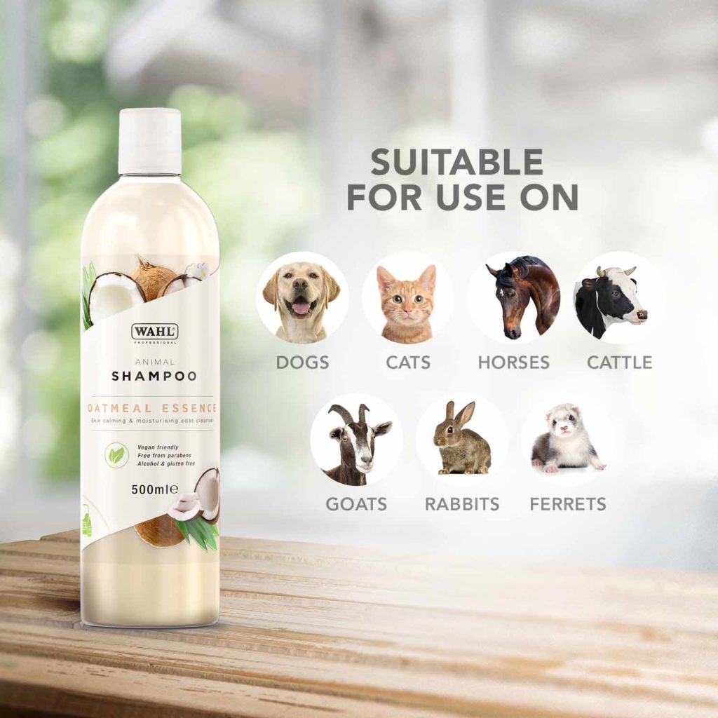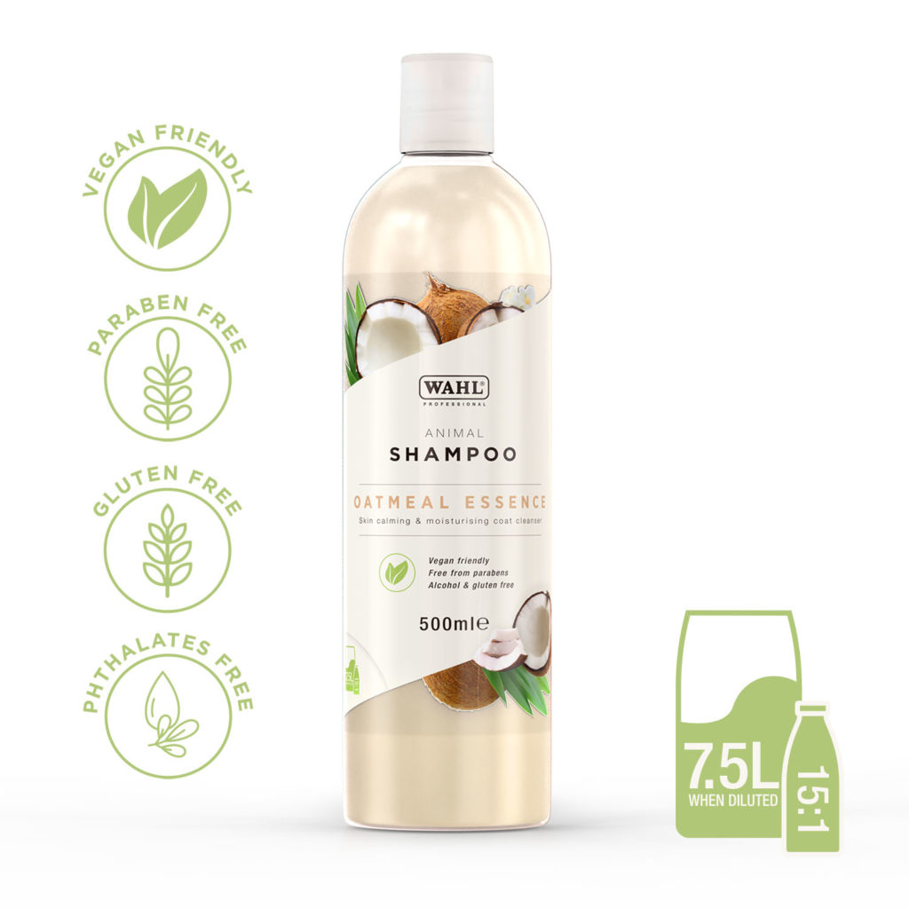 Wahl Showman Oatmeal Essence Shampoo is the perfect shampoo for animals with very sensitive skin. It contains oat proteins to soothe and reduce irritation in the skin, as well as natural coconut extract and almond oil to help moisturise in and condition hair, helping to ease dryness and inflammation at the same time. This gentle shampoo removes dirt, grease and odour from the coat and is suitable for all hair types. With a soft and natural smelling coconut fragrance with a hint of sweetness.