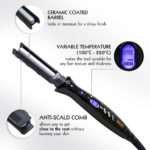 - Protects the hair: The ceramic coated barrel locks in moisture for shiny and smooth results.