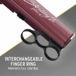 It features an interchangeable finger ring for a stable trimming position that provides full control.