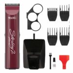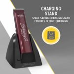 This burgundy trimmer comes with its own fast charging stand and on a full charge will give you 90 minutes of continuous operation. Its chrome-plated blades are literally a snap to change, thanks to Wahl’s unique snap on/snap off design with a single attachment hole.