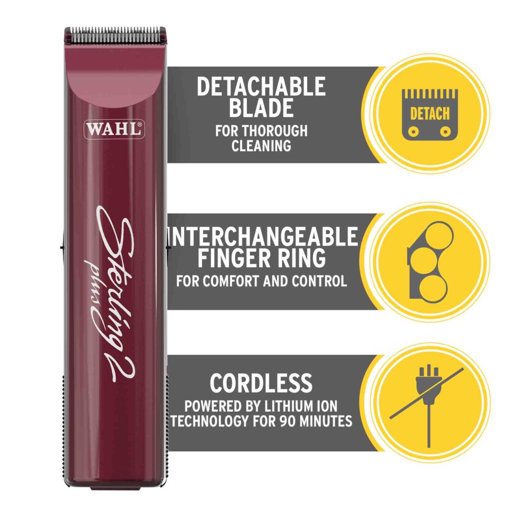 The Wahl Sterling 2 Plus Trimmer (Burgundy) is a high performance rechargable professional outlining trimmer, giving up to 90 minutes of cordless usage when fully charged.
