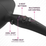 Multi-speed air control that includes a cool shot ‘Style Lock’ button and a turbo heat switch for an extra boost of power. The dryer has 3 heat and 2 speed settings for versatile styling options.