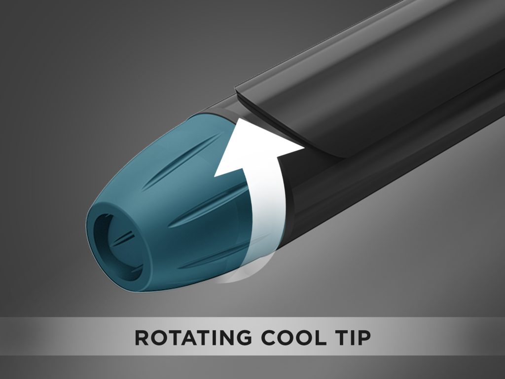 With a 360°c rotating cool tip provides a safe place to hold when styling.