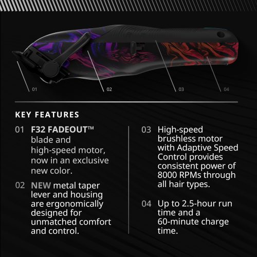 Cutting to scalp can be an inefficient process and uncomfortable for those in – and behind – the chair. The Vapor combines a high-powered motor with the new F32 FADEOUT blade for rapid precision.